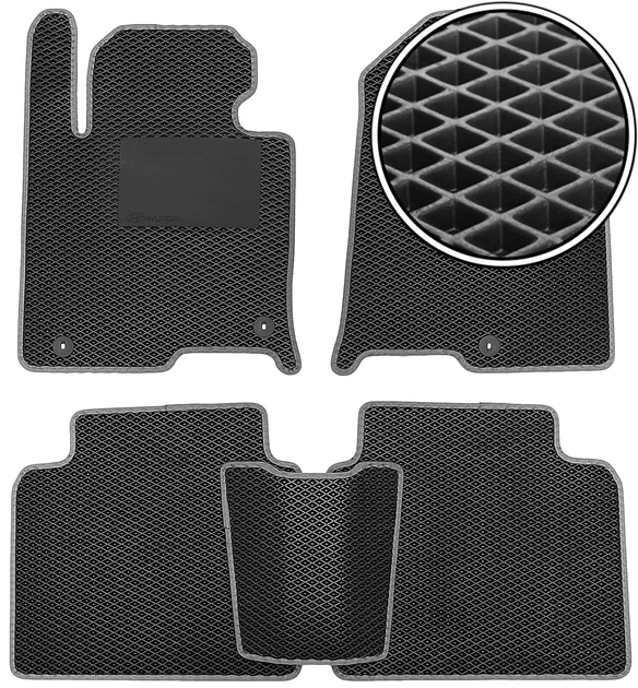 Килимки в салон Kinetic для Hyundai Sonata '15 - EVA чорні з сірою тасьмою (комплект)