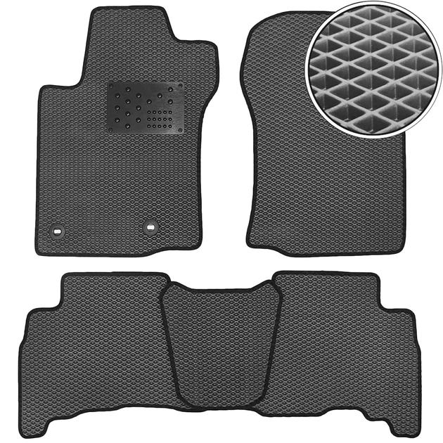 Килимки в салон Kinetic для Toyota LC Prado 150'13-EVA сірі з чорною тасьмою чорний. мет. підп'ятник (комплект)