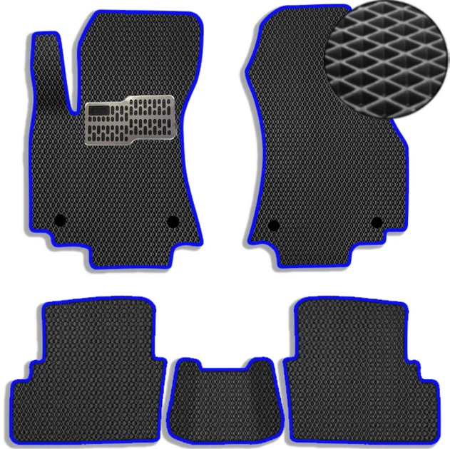 Коврики в салон EVA для Chevrolet Volt II 2015-2019 з підп'ятником Чорні-Синій кант 5 шт