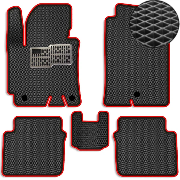 Коврики в салон EVA для Volkswagen Touareg I 2002-2010 з підп'ятником Червоні-Червоний кант 5 шт