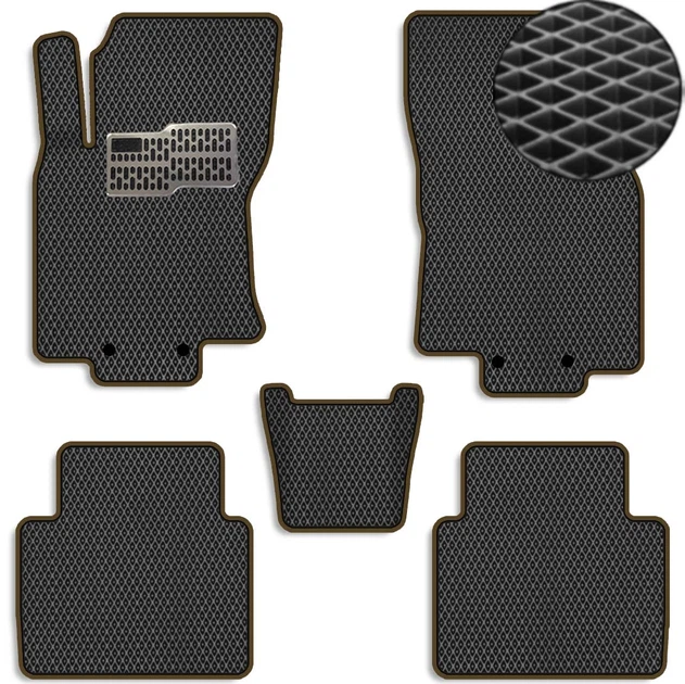 Коврики в салон EVA для X-Trail / Rogue (T32) 2014-2020 (Металевий підп'ятник) Чорні-Коричневий кант 5 шт