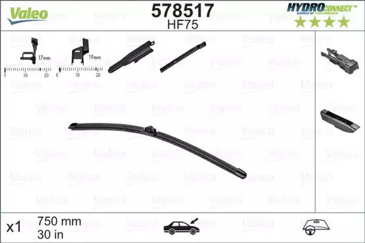 Щітка склоочисника Valeo HF75 HydroConnect Front LHD 75cm x 1шт.