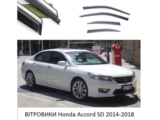Дефлектори вікон вітровики Honda Accord седан 2014-2018 П/К скотч FLY нержавіюча сталь 3D BHDAC1423-W/S (145)