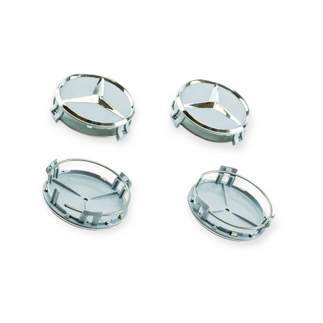 Заглушки ковпачки литих дисків для Mercedes-Benz, срібло/хром. Комплект 4 шт. (75 мм)