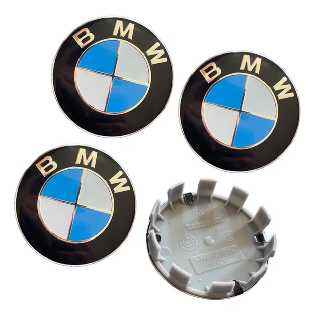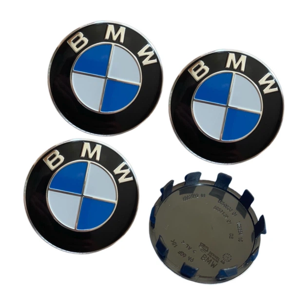Комплект ковпачків-заглушок в центр литих дисків BMW 68 mm E39 E46 E53 E60 E61 E70 E71 E82 E83 E90 F07 F10 F30 біло-синя емб