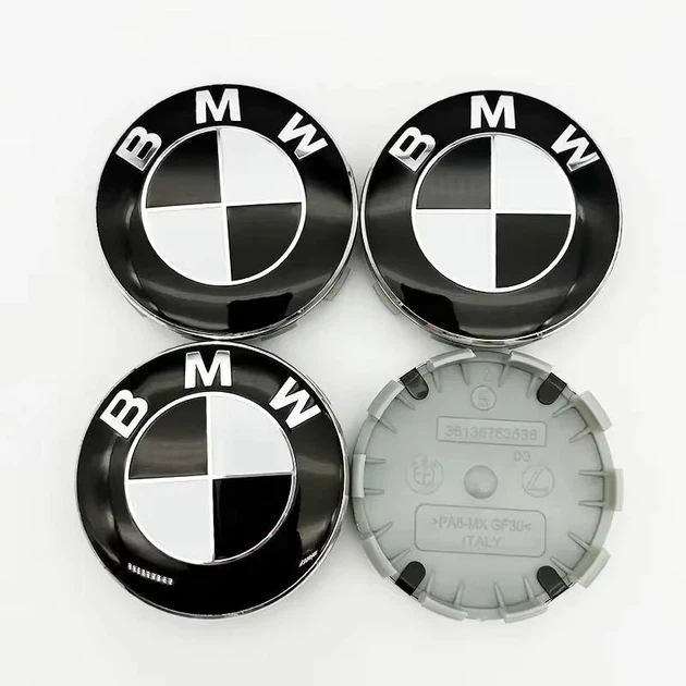 Комплект ковпачків-заглушок в центр литих дисків BMW 56mm G20 G22 G30 G31 F48 G01 G02 G05 G11 G06 G07 F48 чорно-біла емблема