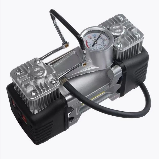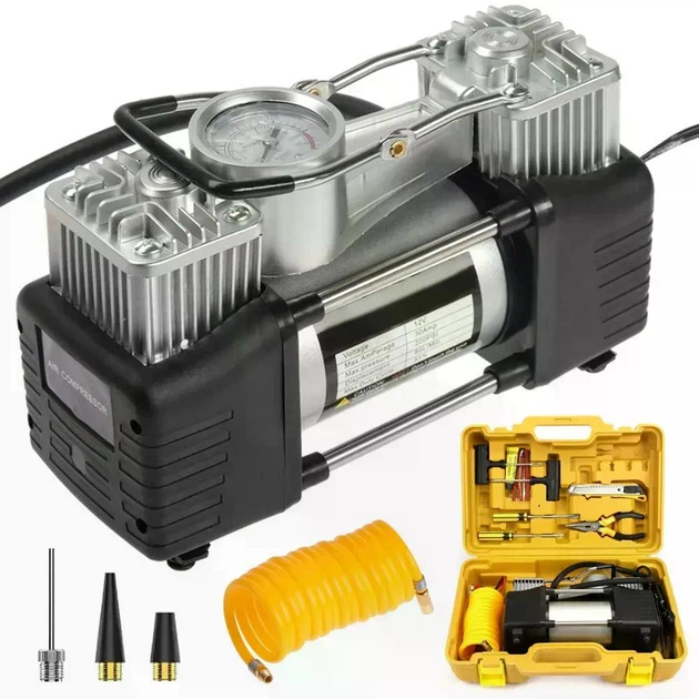 Двопоршневий автомобільний компресор із ремкомплектом і набором інструменту