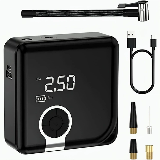Компресор ATJ-9566 80W, 2000mAh портативний універсальний насос з LED-дисплеєм (17372)