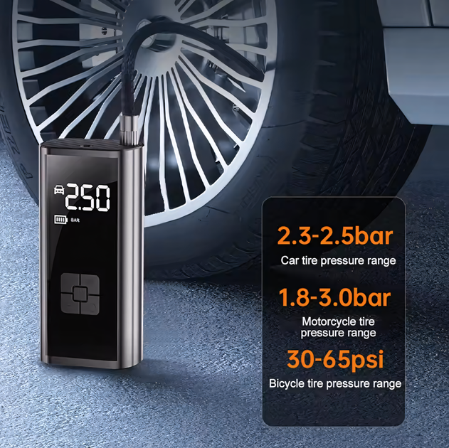 Компресор для шин бездротовий портативний 6000 мАг Насос акумуляторний для коліс Повітряний компресор для шин Ліхтарик