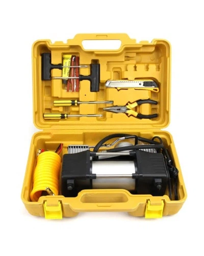 Автомобільний компресор із набором інструментів у кейсі, 12 В, 150 PSI, подвійний циліндр