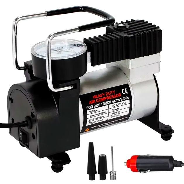 Автомобільний компрессор від прикурювача + 3 насадки, 965кПа / Насос / Автокомпоресор Air pump NC-208 (L)