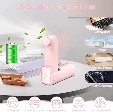 Портативний настільний вентилятор з 4 регульованими швидкостями USB до 15 годин