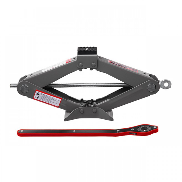Домкрат механічний ромбовидний з тріскачкою гумовим упором ребрами жорсткості максимальною вантажопідйомністю 1,5 т (482313-