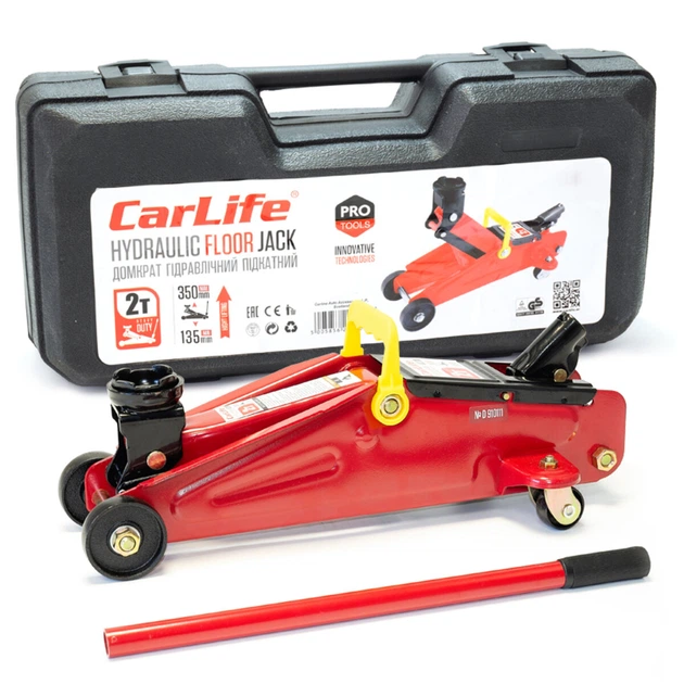 Домкрат підкатний CarLife 2т 135-350мм в кейсі