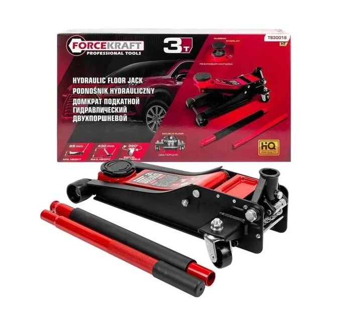 Домкрат гідравлічний підкатний низькопрофільний (85-430 мм) 3т FORCEKRAFT FK-T830018HT