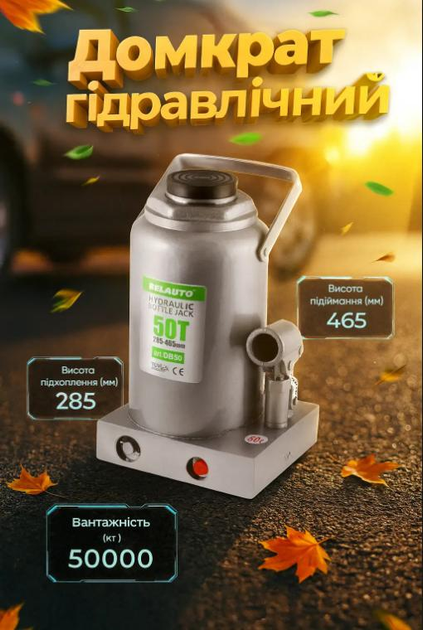 Домкрат гідравлічний пляшковий BELAUTO DB50 50т 285-465 мм Метал Сірий (DB50)