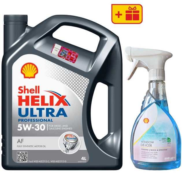 Моторна олива Shell Helix Ultra Pro AF 5W-30, 4 л + Розморожувач скла Shell Window De-Icer 0.5 л