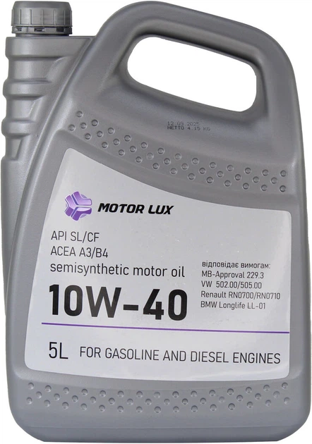 Двигун бензиновий, дизель 10W-40 (Motor Lux) Semisynthetic 5л.
