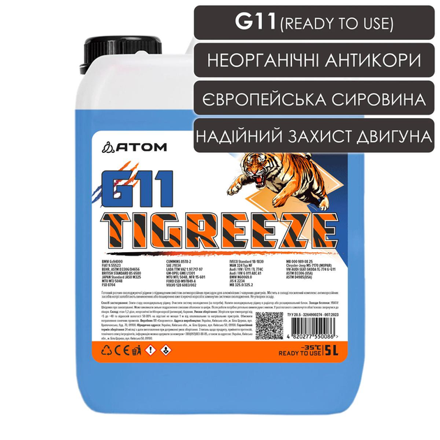 Антифриз TIGREEZE G11 синій (ready to use), 5L