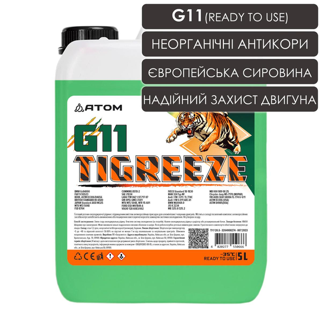 Антифриз TIGREEZE G11 зелений (ready to use), 5L
