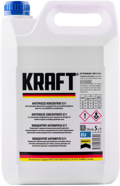 Антифриз Kraft G11 Blue концентрат для системи охолодження 5 л (KF102)