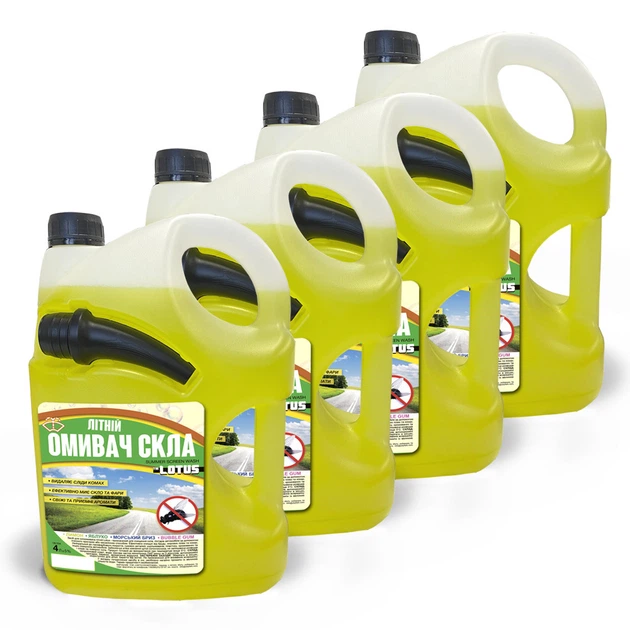 Омивач скла Літній "Лимон" Lotus каністра з носиком УПАКОВКА 4 шт. x 4 л