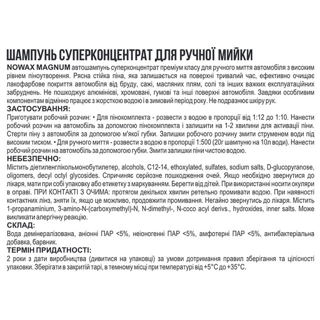 Шампунь 1L з воском "Nowax" NX01162 Magnum Foam Shampoo/ суперконцентрат 1:500