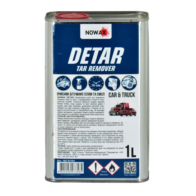 Очисник бітумних плям та смол NOWAX DETAR TAR REMOVER 1L (9шт/уп)