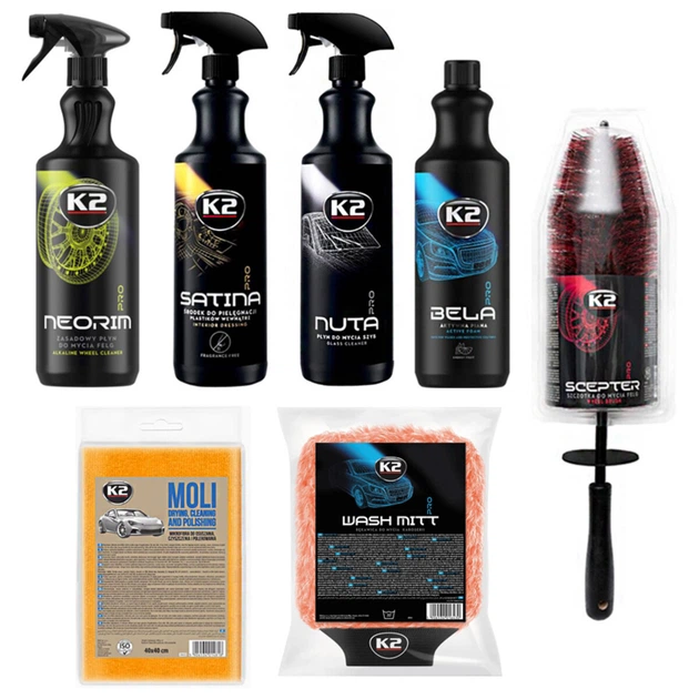 Міні набір для догляду за авто K2 7 од. професійна хімія для чищення кузова та дисків автохімія (1LO-TH11C)