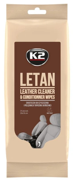 Вологі салфетки для очищення шкіряної оббивки "K2" 24 шт (20х18см) Letan Wipes K210