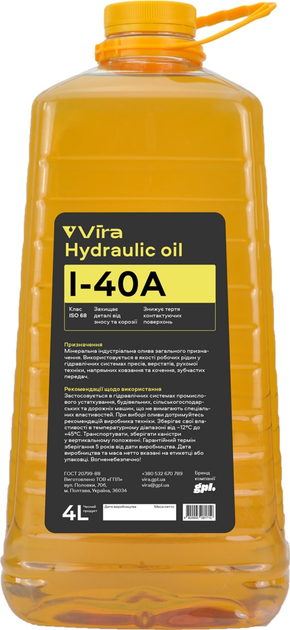 Олива індустріальна VIRA І-40А ISO 68 4 л (VI0332)