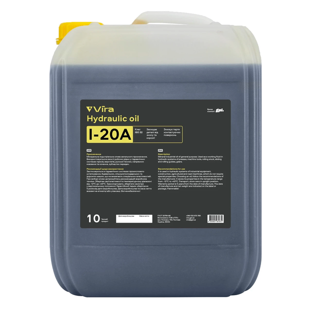 Олива індустріальна Vira І-20А ISO 32 10 л (VI0330)