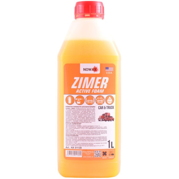 NOWAX суперконцентрат для безконтактної мийки Zimer Active Foam 1 л 1:20;1:30 (NX01139) суперконцентратдлябезконтактноїмийки