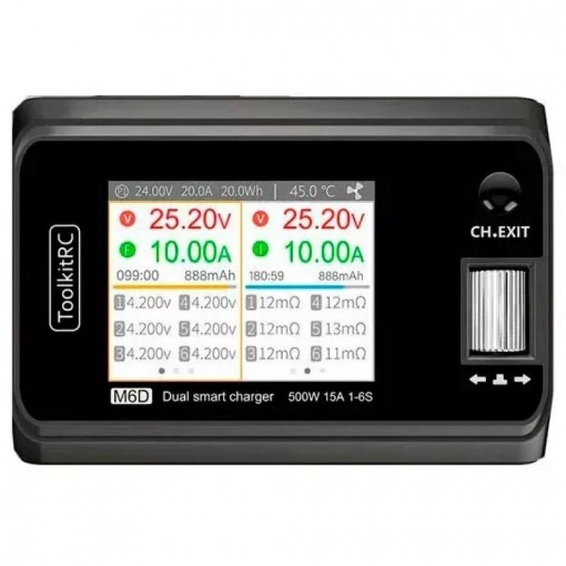 Зарядний пристрій ToolkitRC M6D 500W – двоканальна зарядка на 500 Вт для акумуляторів FPV дронів