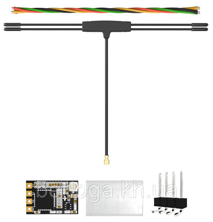 Пакування: пакет ОЕм Стан: новий Гарантія: 14 днів КОМПЛЕКТАЦІЯ: 1: Приймач рознесеного прийому ELRS 2.4G 2: Термозбіжна трубка 3: 30AWG силіконовий провід (1 чорний, 1 червоний, 1 білий, 1 жовтий) 4: Приймальна антена 2.4G*2