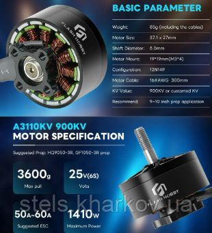 Безколекторний мотор FlashHobby Arthur 3110 900KV BLDC A3110-900KV