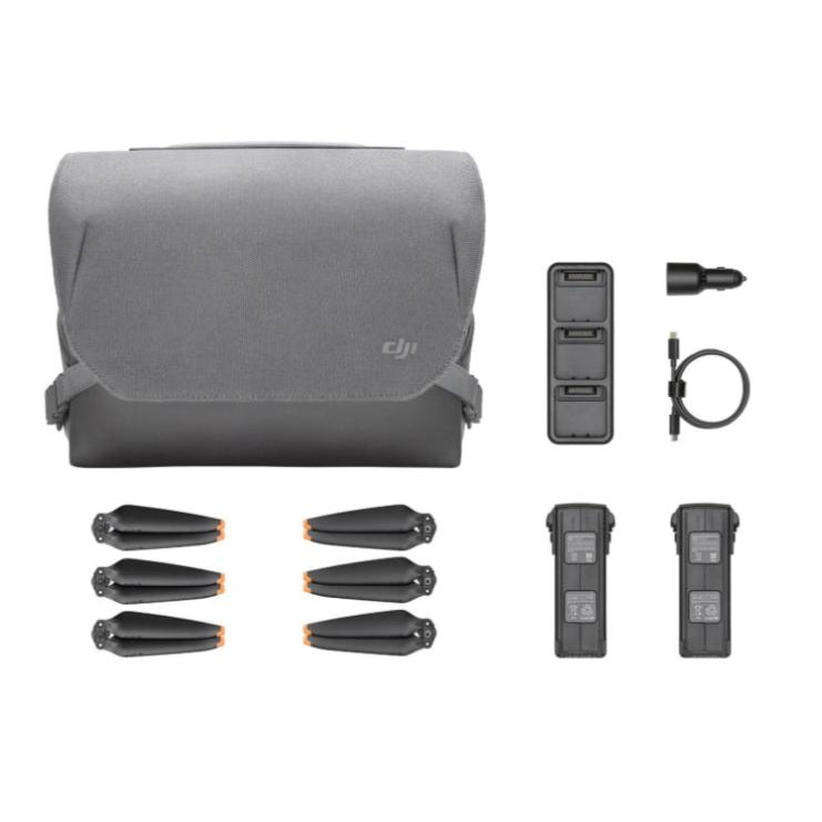Комплект аксесуарів | Сумісність: DJI Mini 3 Pro | Включає дві інтелектуальні батареї, двосторонній зарядний концентратор, дві пари пропелерів, 12 гвинтів, сумка на плече, кабель для передачі даних USB 3.0 Type-C | Кожна батарея може забезпечити Mini 3 Pro до 34 хвилин польоту при повній зарядці