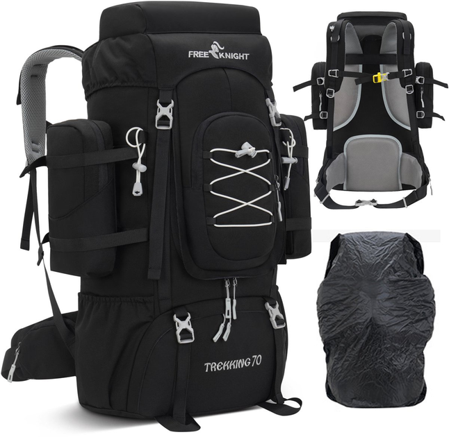 Туристичний рюкзак FREE KNIGHT FK0387 70L Чорний - Водонепроникний з чохлом від дощу