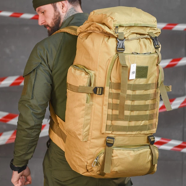 Тактичний рюкзак Cordura 80 л з системою кріплення Molle койот