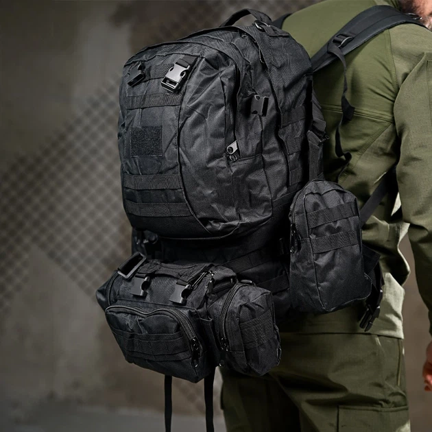 Тактичний рюкзак Bresh 55 л з системою кріплення Molle та липучкою чорний 50x12,5x34 см