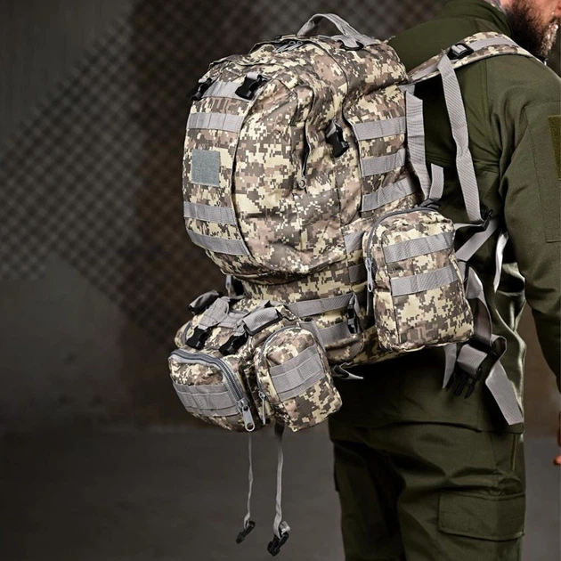 Тактичний рюкзак Bresh 55 л з системою кріплення Molle та липучкою піксель 50x12,5x34 см
