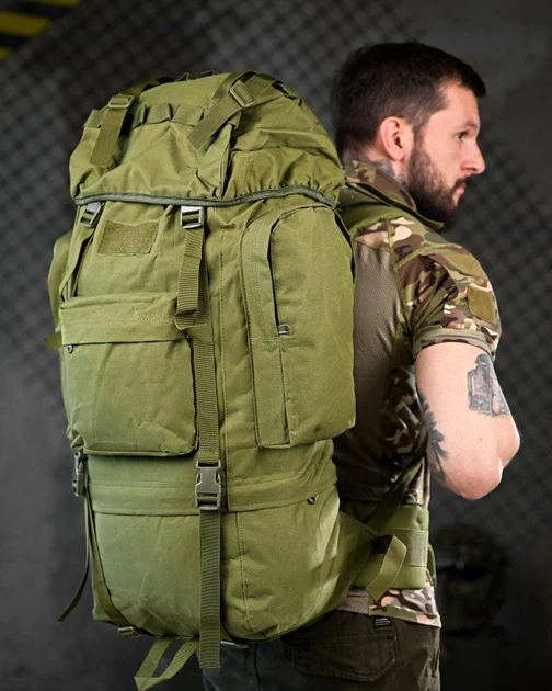 Тактичний каркасний рюкзак РП7468 Олива 100 л зносостійкий Oxford водозахисний