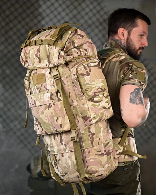 Тактичний каркасний рюкзак РП7467 Мультикам 100 л зносостійкий Oxford водозахисний