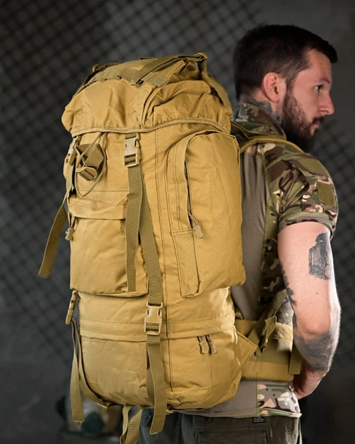 Тактичний каркасний рюкзак РП7466 Койот 100 л металевий каркас зносостійкий Oxford