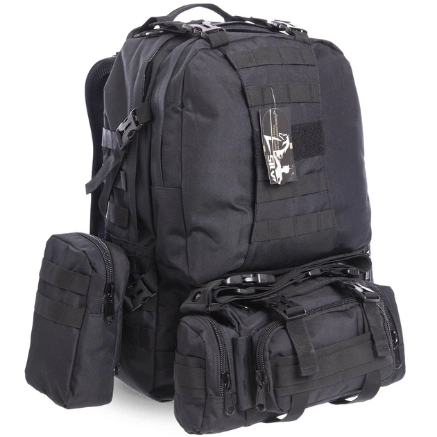 Рюкзак тактичний триденний штурмовий SILVER KNIGHT (нейлон, оксфорд 900D, р-р 49х27х18см, 24л, Чорний) (TY-9396Чорний)