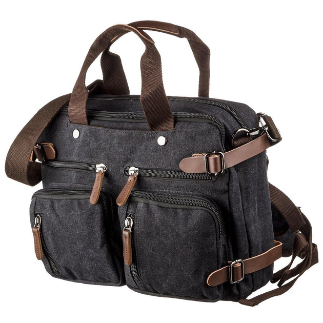 Рюкзак трансформер дорожня сумка чоловіча з відділенням для ноутбука текстильна чорна Vintage 20144