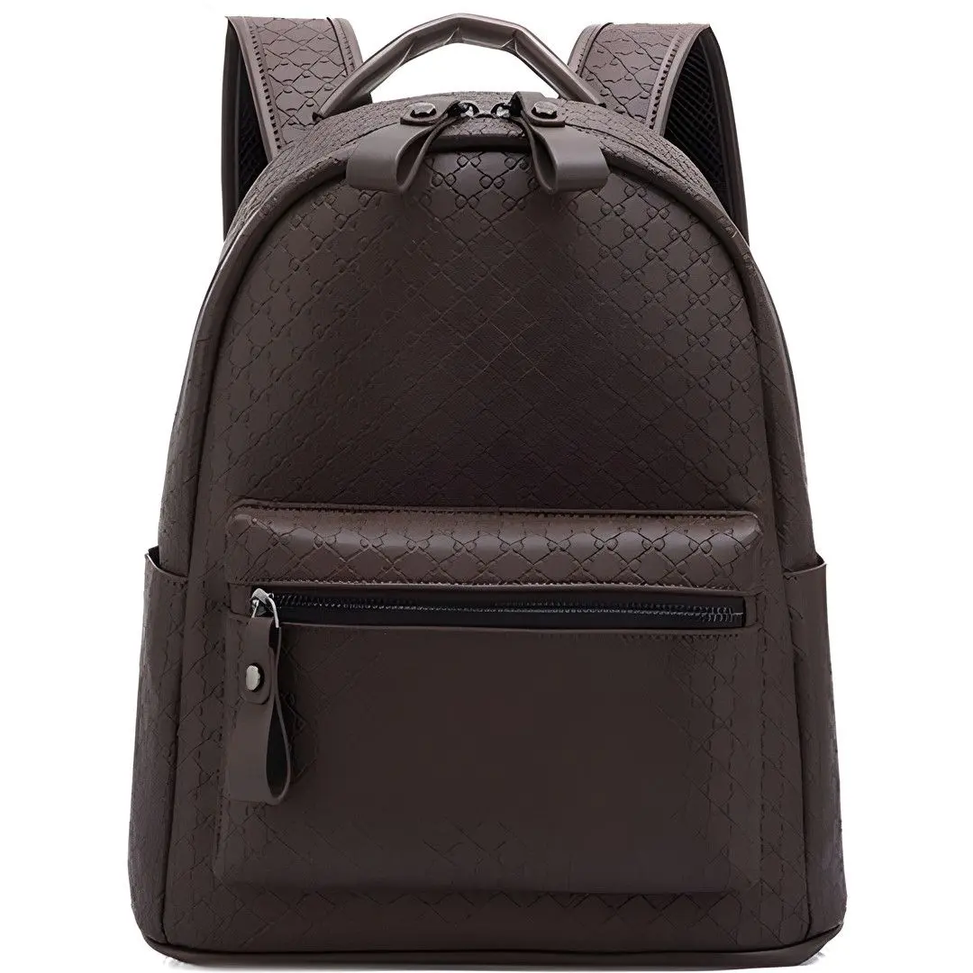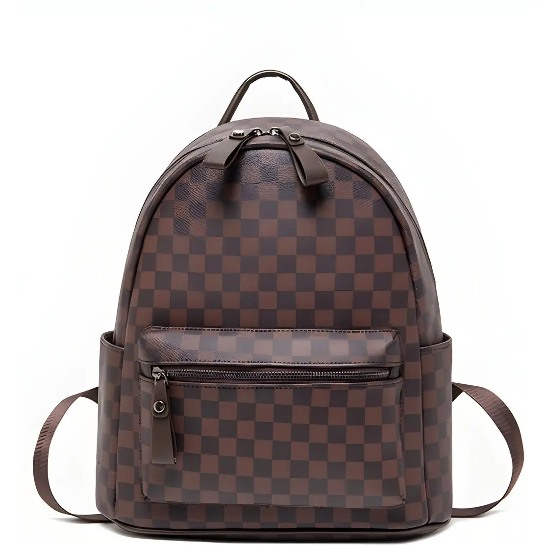Повсякденний жіночий рюкзак з екошкіри 30х13х35 см темно-коричневий у клітинку (2255)