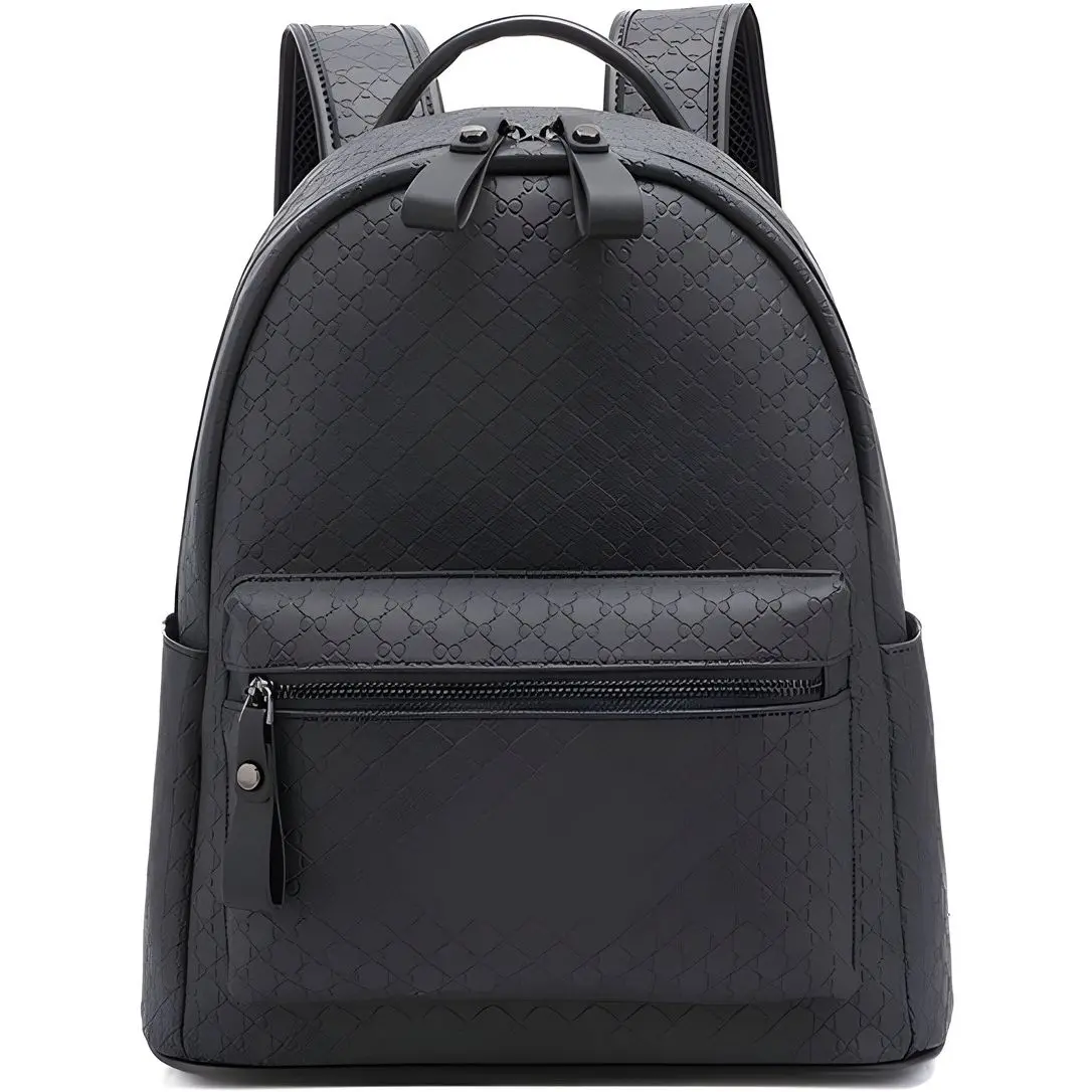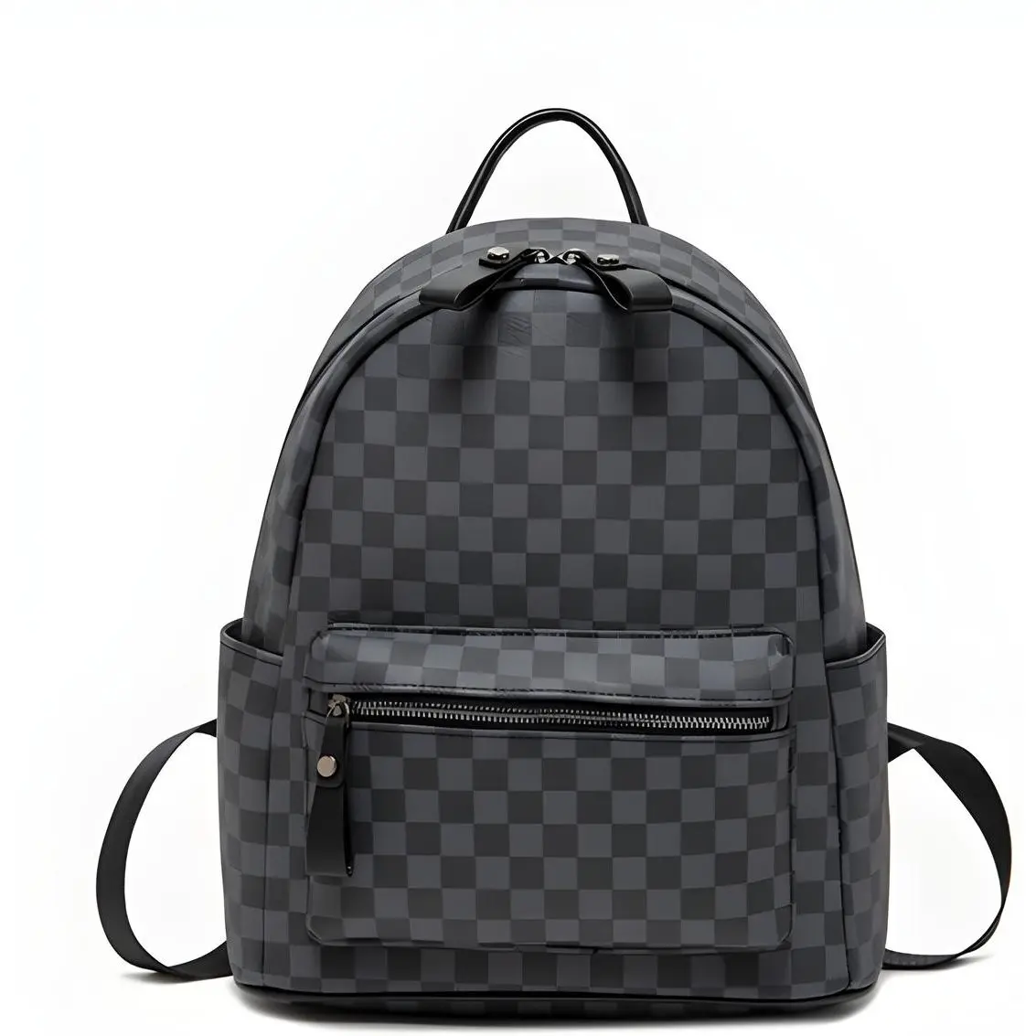 Повсякденний жіночий рюкзак з екошкіри 30х13х35 см чорний у клітинку (2255)