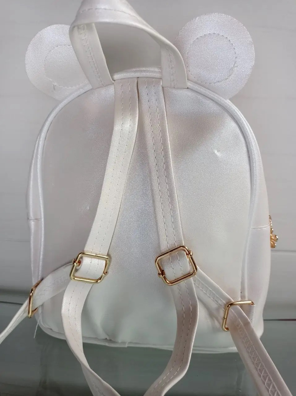 Детский рюкзак 22х20х10см белый с бантиком. Материал текстиль, искусственная кожа. Одно большое отделение и карман.