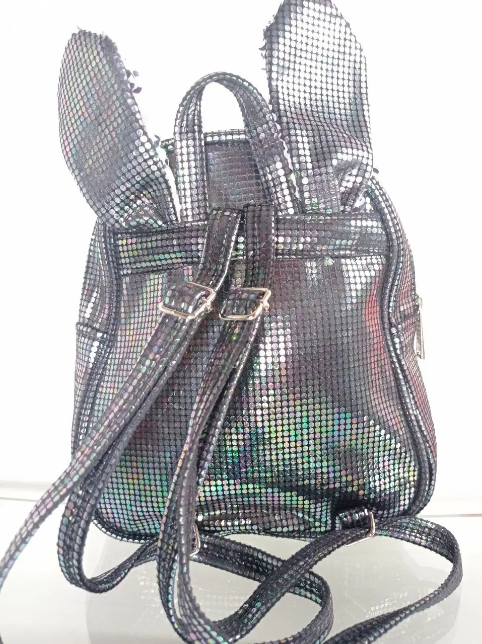 Детский рюкзак 23х20х8см черный в пайетах. Материал текстиль + искусственная кожа. Одно большое отделение и карман.